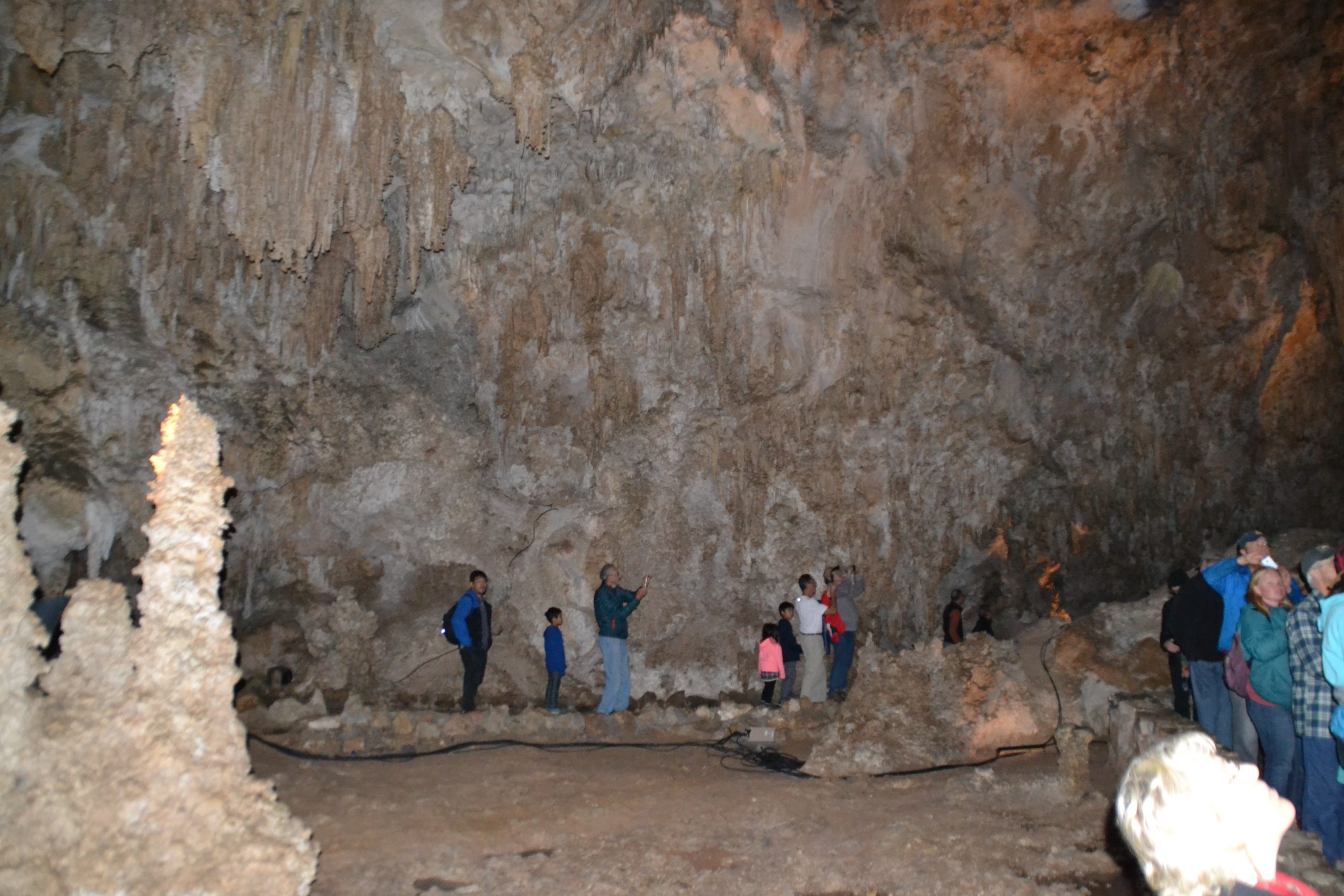 Day 2 of our cavern tours were self-guided. As one of the Rangers told us, 90% of the caverns that is available for touring is self-guided. And if you still have crappy weather outside, might as well be touring a cave. We entered through the natural entrance. This is also the entrance where the bats fly out of at dusk. The bats winter in Brazil, so we didn’t get to see them. Maybe next time. My pictures just aren’t able to show the magnitude of the caverns. This is one of those that you really have to see for yourself. To come down the natural entrance takes about an 1 and a half hours to get to the Big Room. You can then either catch the elevator back up or tour the Big Room. Just to do the circuit around the Big Room is about another 1 and a half.