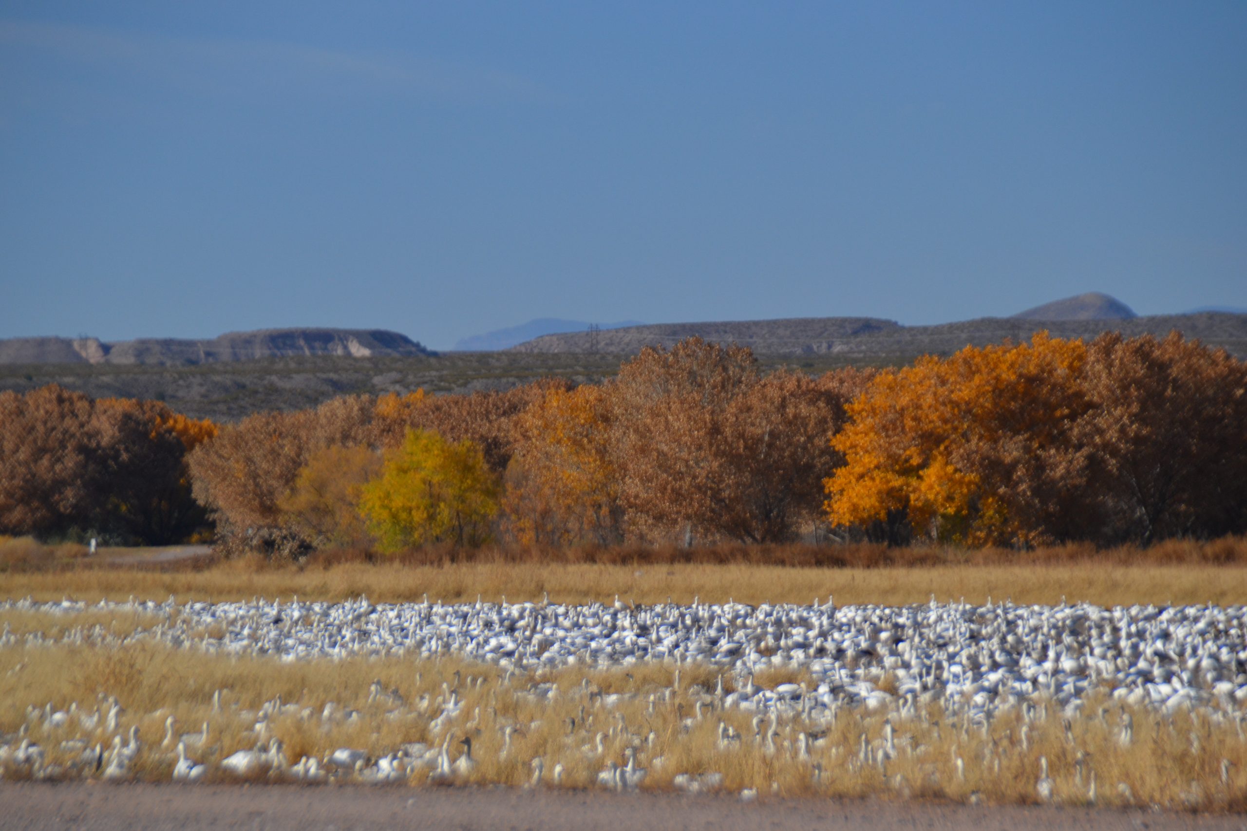 The Bosque del Apache is a Wildlife Refuge, which has a festival every year to celebrate the migration of the Sandhill cranes. Some of the cranes winter here or in Texas or Northern Mexico. In the Spring, they begin their trek back to Canada, Alaska or Siberia. (And we complain about a 6 hour flight.) We did the driving tour and checked out some of the cranes and snow geese. I also developed serious case of camera lens envy. Most of the people we saw are hardcore bird watchers and had huge camera lenses or telescopes. I hope Santa is good to me this year…..