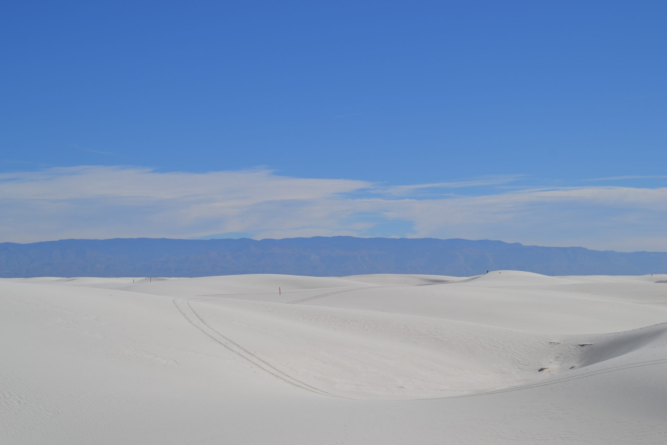 We started our day at the White Sands National Monument, which is in between Alamogordo and Las Cruces. It was a gorgeous day to visit White Sands. Plus it was also one of the National Parks free admittance days. White Sands is a gypsum dune field and at over 275 square miles is the world’s largest. It sure is a surreal experience being out in the middle of the desert surrounded by white sand.