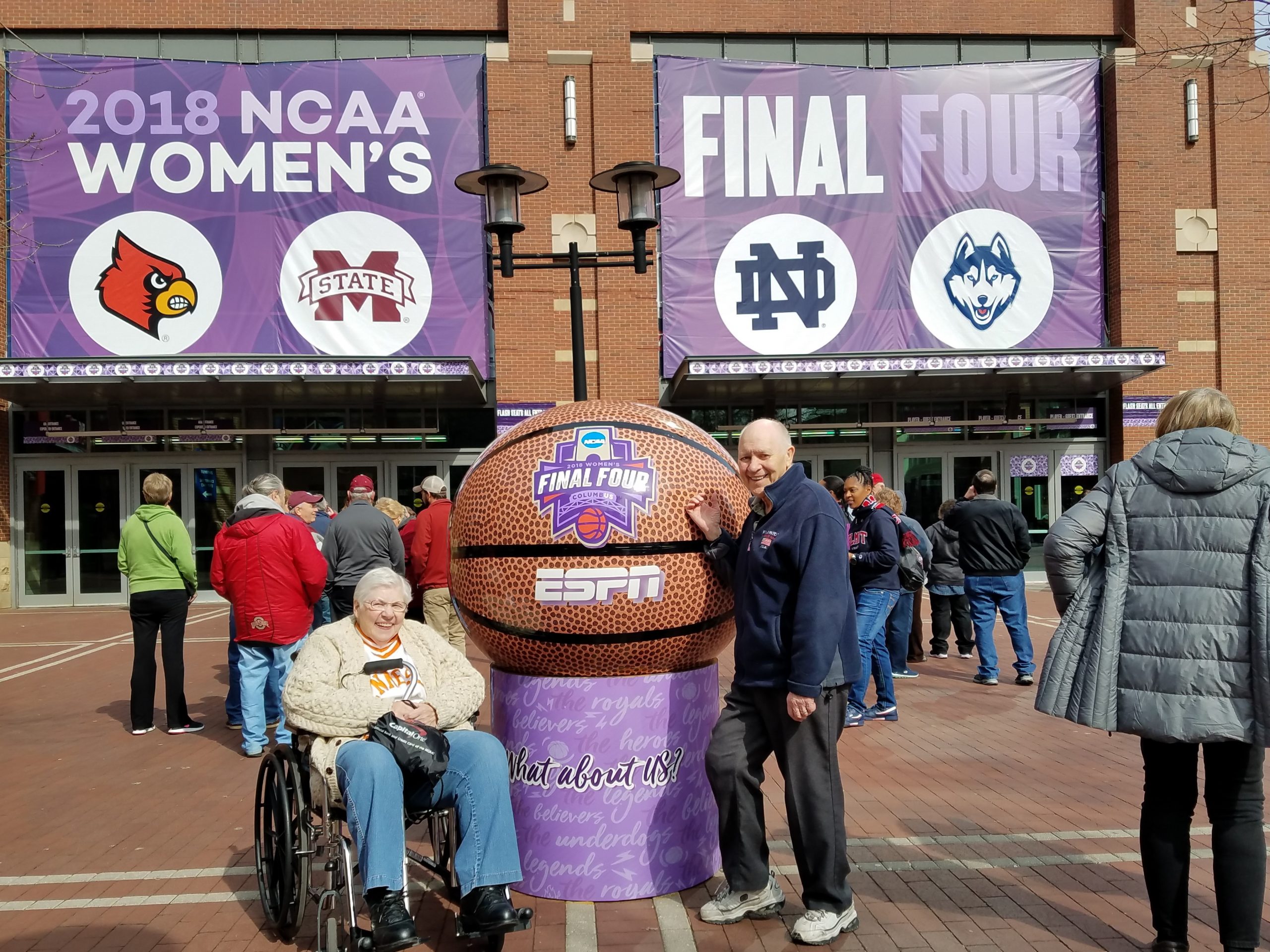 Time for the final game? We got there early got our ADA parking and were able to exchange our tickets for limited mobility seats. Yeah! Since we know the routine, it went a lot easier and we were able to store the wheelchair a couple of rows behind us. Still no guarantee it would be there when the game was over, but at least we could check on it occasionally. The game was exciting match-up between Mississippi State and Notre Dame that went down to the final seconds. Truly, a great set of games this past weekend.