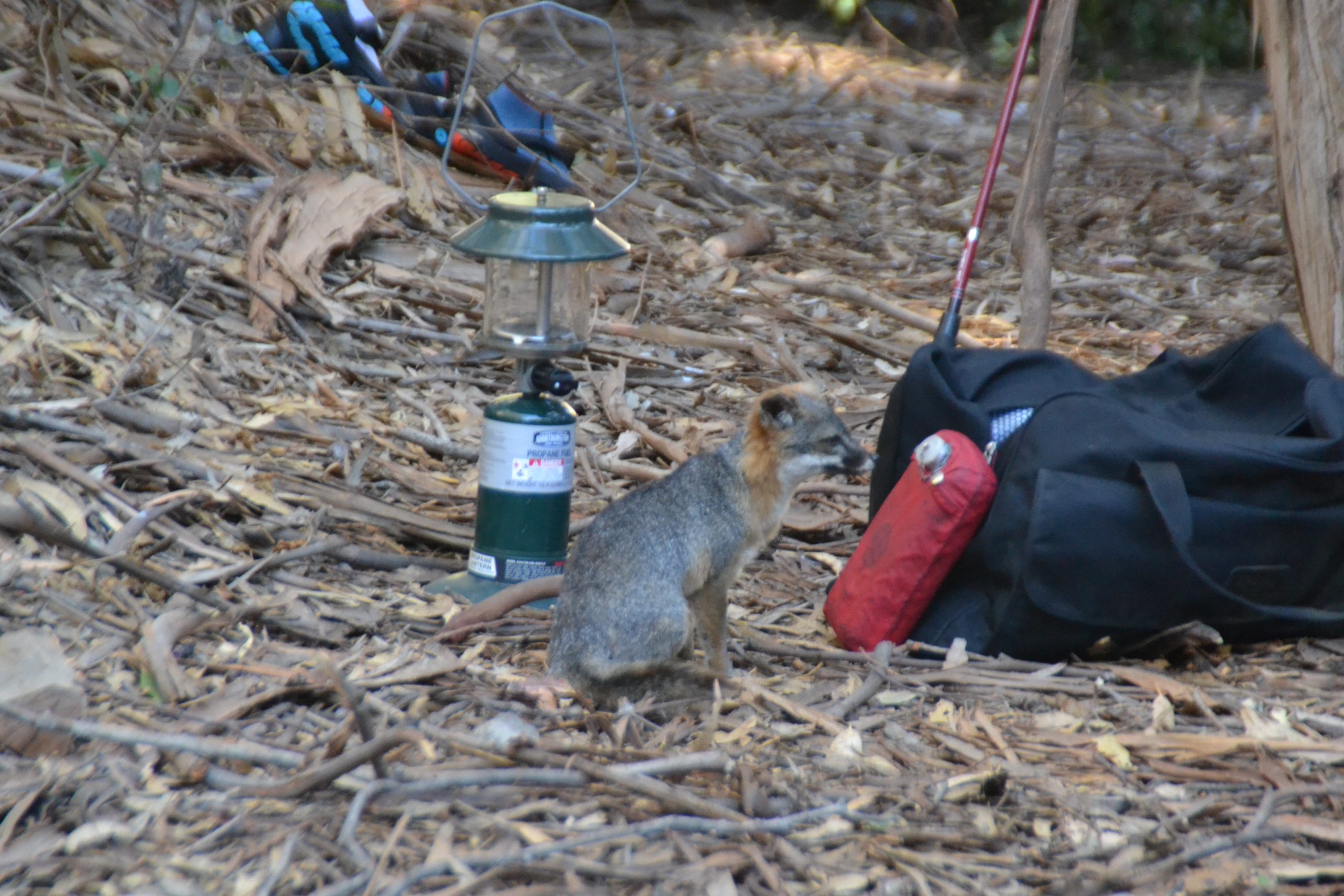 We were then on to meet the rest of our group at Ventura harbor for our adventure to the Channel Islands. Five of the eight Channel Islands make up the Channel Island National Park. We chose Santa Cruz Island for our 3 nights of camping. Upon reaching the ferry dock, we were told the crossing would be rough and were offered a refund. Well, we had 3 nights of camping scheduled and were a group of 7, so on we went. The swells were 4-5 feet and it was rough. I ended up spending half the trip outside when I started feeling a bout of seasickness coming on as did quite a few others. Unfortunately, one member of our group really had a tough time and looked really green when getting off at the island. Thankfully, Alan recovered fairly quickly once we got on land. After a quick talk from Ranger Bethany about the do’s and don’ts of island food storage we were turned loose to hike to our campsites. The Island Foxes have really taken to hunting for food left out by careless campers. The campground foxes are not shy and will take your food unless you remain constantly vigilant. They will also visit your tent if it is not zippered up correctly. There is a lot of truth to the saying clever like a fox, because these guys are something else. Fox proof boxes are provided at each campsite, which like food storage for bears, food and anything scented must be stored in the box. We got our tents set up, fixed our lunch, and went to check out the Visitor Center. The Visitor Center provided a brief history on the island and what happened when ranchers took it over in the mid 1800’s and what the park service has been doing to return the island to it’s natural state. We then went off to explore the island a bit more and did the Potato Harbor hike. The views were incredible and the hike was a fairly easy 5 miles. We chose to head out to Cavern Point on our return to create a loop instead of an out and back hike. The night was spent talking, playing cards, checking out the starts and enjoying a really lovely evening until the nightly fox fighting began. Those guys are very territorial and square off multiple times day and night.
