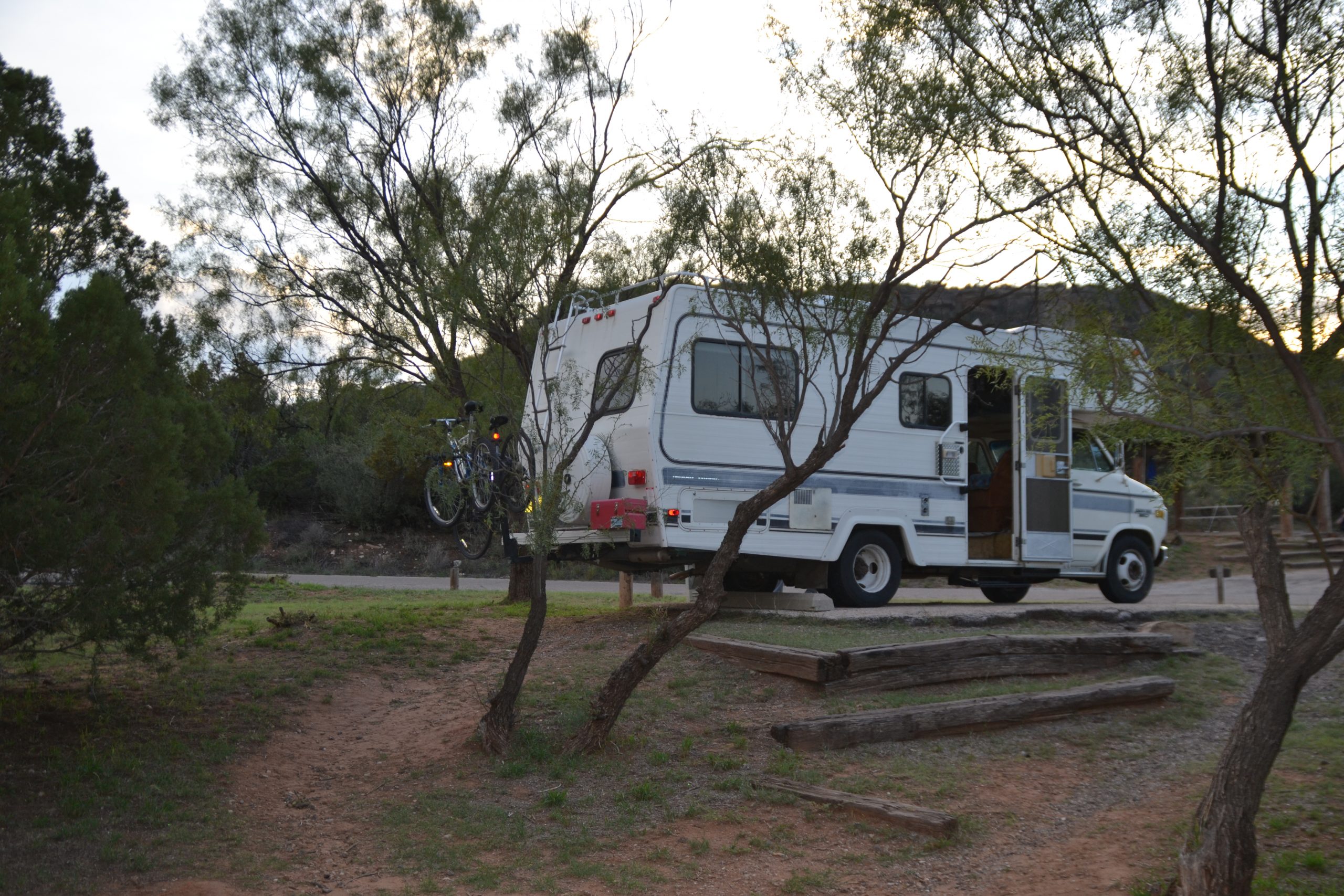 Our next stop was Hinton, OK, west of Oklahoma City. Red Rock Canyon State Park is a small narrow canyon with yes, red rocks. The road down was again steep and has a couple of very tight turns. So, if you have big rig, keep that in mind. We found our site and got setup. We went for a short walk on one of the nearby trails, just to get our legs moving from sitting all day. There were many groups of campers enjoying the cooler weather. What a day, woke up around 2am to see water dripping from our ceiling. Put a bowl to catch the water and tried to go back to sleep. The drip was coming from our A/C unit, so Will thought maybe the bolts had loosened. Well, luckily for us that seemed to do the trick as the leak stopped. We were both relieved no one had to get up on the roof in the pouring rain. The next morning, it was still raining and we watched as all the other campers packed up and left, leaving us as the lone survivor. The rain was heavy off and on throughout the day. At one point we thought it had stopped and got out to at least walk along the park road as being cooped up in Ms. Wynn all day was giving us cabin fever. This park is small, but is a popular repelling site as it’s close to OKC. There is also a pool open in the summer months for cooling off. There are a few trails, but with all the rain, we thought the trails would just be a muddy mess. We got back from our park tour with only about 10 minutes to spare before it was pouring rain again. Hopefully, the rain will clear up in the next couple of days.