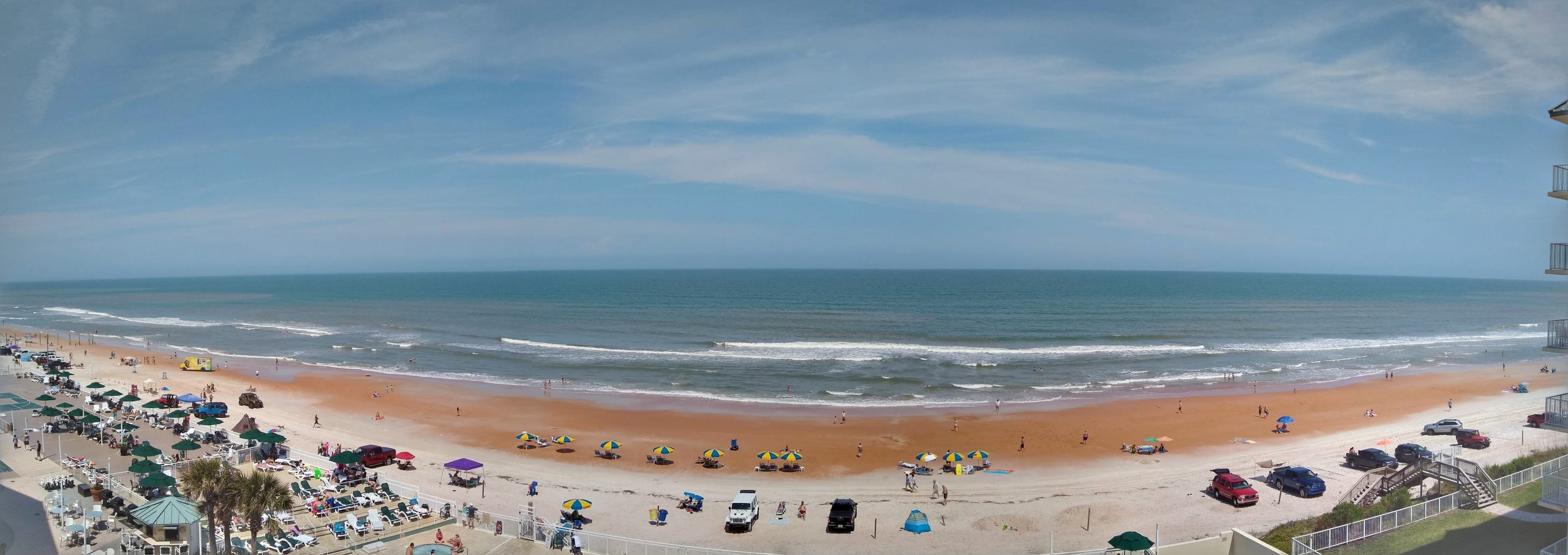 We crossed from the gulf side of Florida to the Atlantic and Ormond Beach. This time we had a small ocean front studio. Great view of the ocean, but the studio had an interesting layout. There’s an outside exit door in the bathroom. Weird, right?