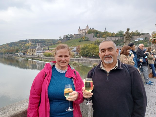 One of the fun things to do in Würzburg is to drink wine on the old bridge. We were enjoying our wine while talking with others from our ship that we narrowly made the 6:15 all-on-board time of departure. We clocked in at 6:14 and didn’t realize that we had cut it that close until the ship started pulling away from the dock.