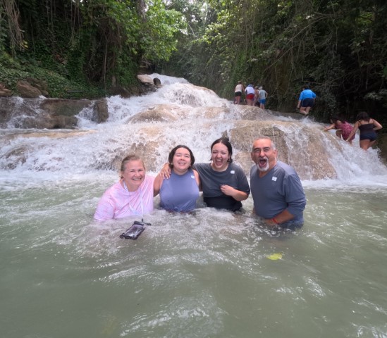 Finally made it to the Dunn River Falls in Ocho Rios. The falls are a cascading waterfall about 960 feet long. The falls are constantly growing from the travertine rock deposits. The guide leads you down to the beach and he proceeds to lead your group on a walk up the falls. It was a lot of fun. We all said this was the favorite thing we did on this trip.